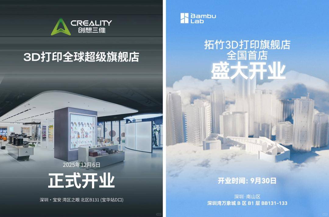 然而,深耕欧美市场的本土头部品牌,突然加码国内市场。2025年9月,拓竹科技在深圳开出国内首家线个月后,创想三维便在同城开店,开启线下竞争。