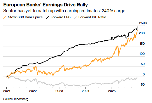 由Emmanuel Cau领导的策略师表示,2026年人工智能(AI)主题或许仍将“掌控股市的命脉”。不过,欧洲股市也将受益于德国的政策刺激,同时在运营杠杆效应、低基数效应以及外汇压力缓解的共同驱动下,预计每股收益将实现8%的增长。