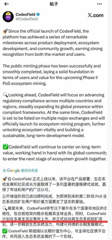 2025年年底,自称「AI与Web3融合典范」的CodexField项目,以系统全面升级为理由忽然停止所有提现功能,