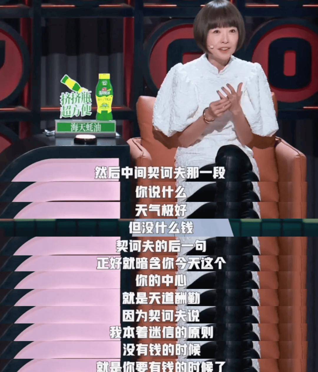 贾耗在段子中写了个契诃夫的梗,她能顺势用契诃夫原话的后半句来呼应、升华。